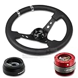 | ✚✚✚ NRG-SRK-181H+016BK-S+200RD, NRG Innovations 13.78" 350mm 3" Deep Dish Style Black Leather Silver Center Marking Racing Steering Wheel Combo with 6 Hole Short Hub Adapter with Gen 2.0 Red Quick Release Kit SRK-181H NRG Quick Release features many options that conventional ball-locking quick release system do not. It is specially engineered with raised sections to prevent the scratching and stretching of the hub while a self locking feature adds increased safety and functionality. Features racing styled for added style and look. Each unit is made from the highest quality aircraft grade aluminum and is anodized for maximum durability and finish.